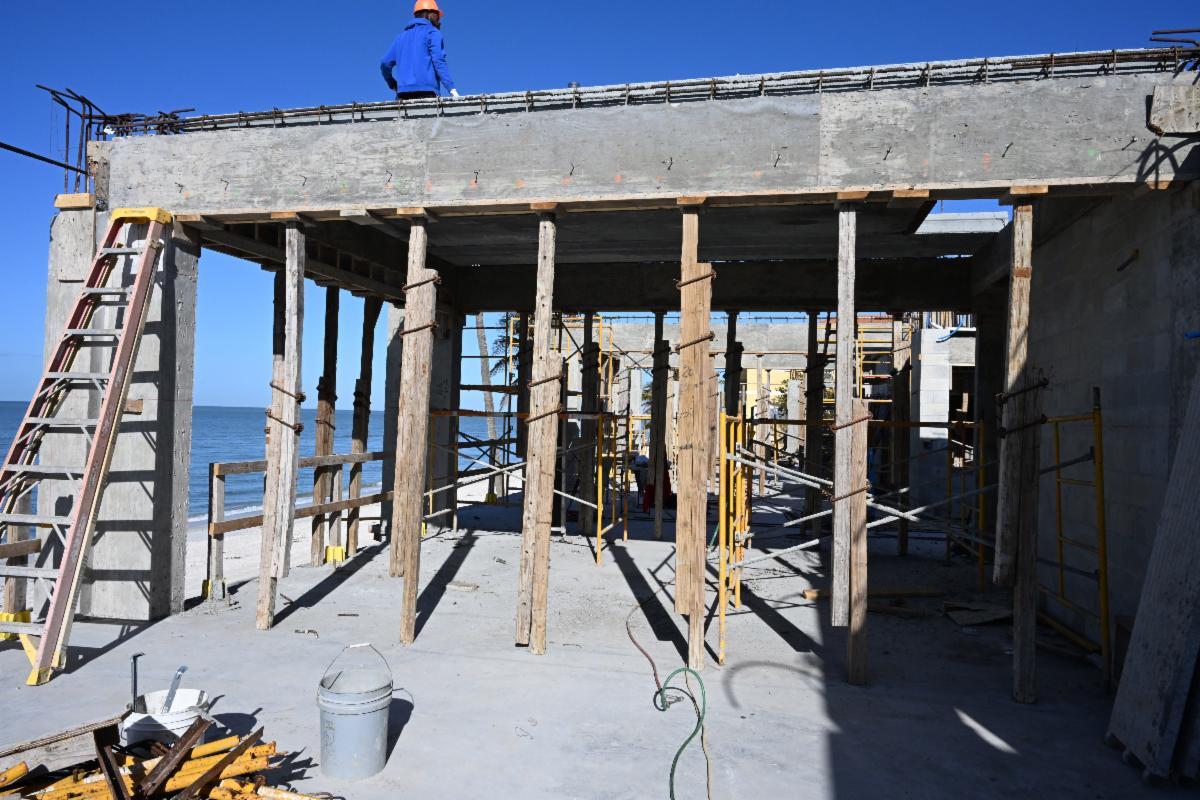 The beach facility continues to take shape. Over the past month more concrete work has been completed. Precast concrete slabs for the roof are being installed, and in the coming weeks, trusses will arrive to begin enclosing the second floor. Tie beams have been poured, forms stripped, and planks set in place. The remaining structural rebar will soon be concealed beneath the topping.